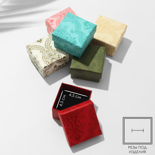 Цена за 5 шт. Коробочка подарочная под кольцо, серьги «Узоры», 5×5 см, (полезная часть 4.5×4.5 см), цвет МИКС