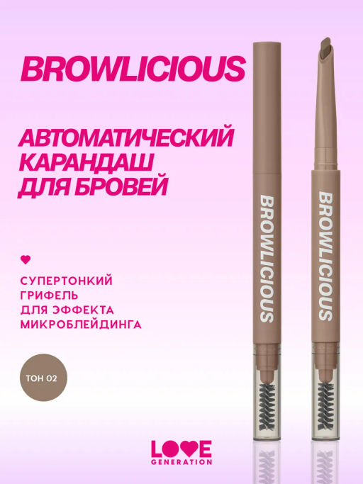 • Новинка Love Generation Автоматический карандаш для бровей Browlicious тон 02 светло-коричневый холодный
