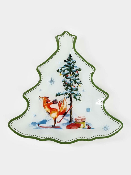 • Блюдо сервировочное новогоднее Доляна «Зверьки в лесу», 24.5×24.7×2 см, стекло, белое