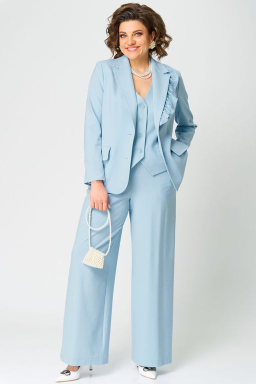 Стильный брючный комплект-тройка с широкими брюками подчеркнет Вашу женственность и придаст образу элегантность.