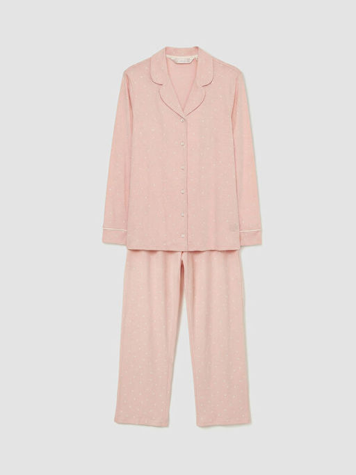 G?mlek Yaka Kalp Bask?l? Kad?n Pijama Tak?m?