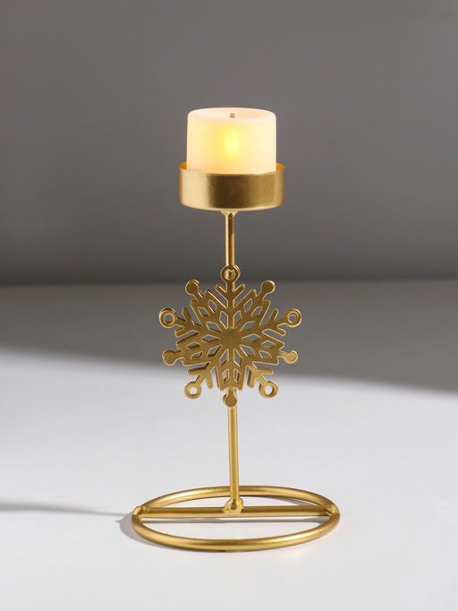 • Подсвечник на 1 свечу «Снежинка», металл под золото, d=4.5 см, 8.5×8.5×16 см