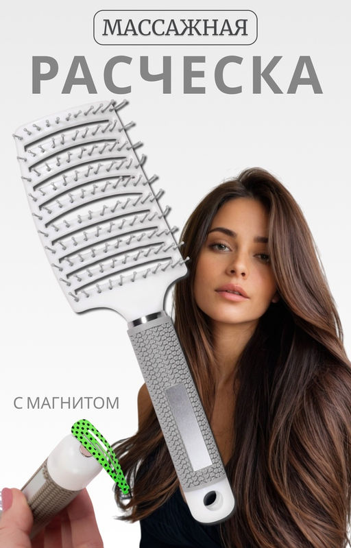 • Расчёска массажная, с магнитом, прорезиненная ручка, 7.5×25.5 (±1) см, серая
