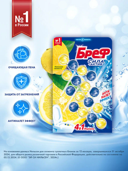 • БРЕФ чист.блок д/унитаза 4х50гр СИЛА-АКТИВ Лимон