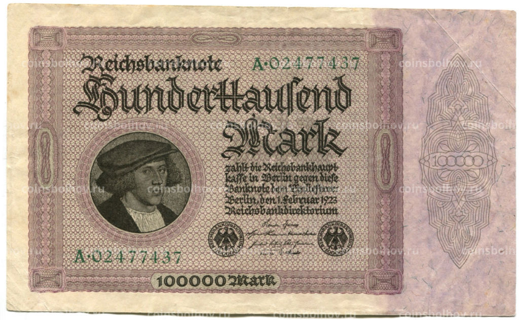• Банкнота 100000 марок 1923 года Германия