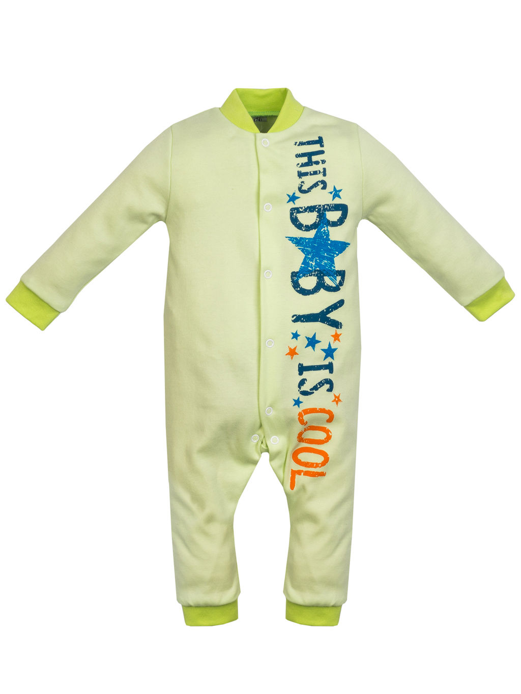 Трикотажный ясельный комбинезон пригодится малышам для носки в прохладные дни. Модель выпускается из гладкого и мягкого на ощупь интерлока. Изделие имеет отложной округлый воротничок, закрытые стопы на штанинах и манжеты на рукавах. Прочные кнопки-застёжки проходят по передней стороне комбинезона.