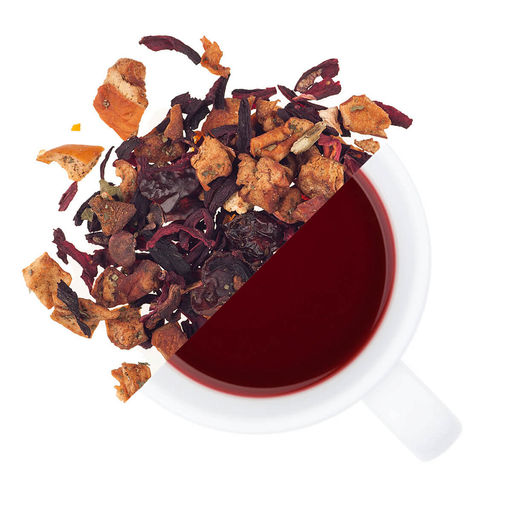 Ароматное сочетание бордовых лепесточков гибискуса, рубленых ягод спелой вишни, кубиков медовой груши и яблок, шиповника и смородиновых листочков, пропитанное органическими маслами вишни. В сухом виде - смесь нескольких оттенков красного с вкраплениями нежно-зеленых листочков. Распространяет цветочно-душистый аромат с вишневыми нотами. Приготовленный купаж приобретает рубиновый цвет с бордовыми, розовыми и коричневыми переливами. Во вкусе гармонично сочетаются кислые аккорды каркаде, сладость садовых ягод и медово-грушевое послевкусие. Преобладают ноты спелой, сочной вишенки.