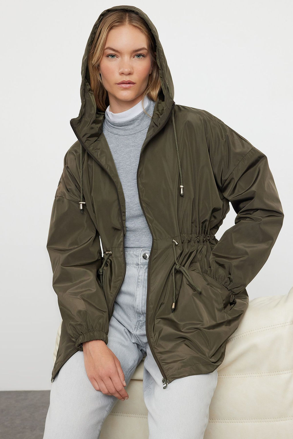 • Haki Oversize Kapusonlu Su Gecirmez Yagmurluk Mont TWOAW24MO00160