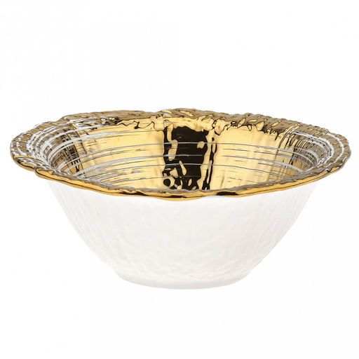 • "Золото" Салатник фарфоровый 380мл, д15х6см, интерьерный, двухсторонний рельефный декор, с золотом, волнистый край (Китай)