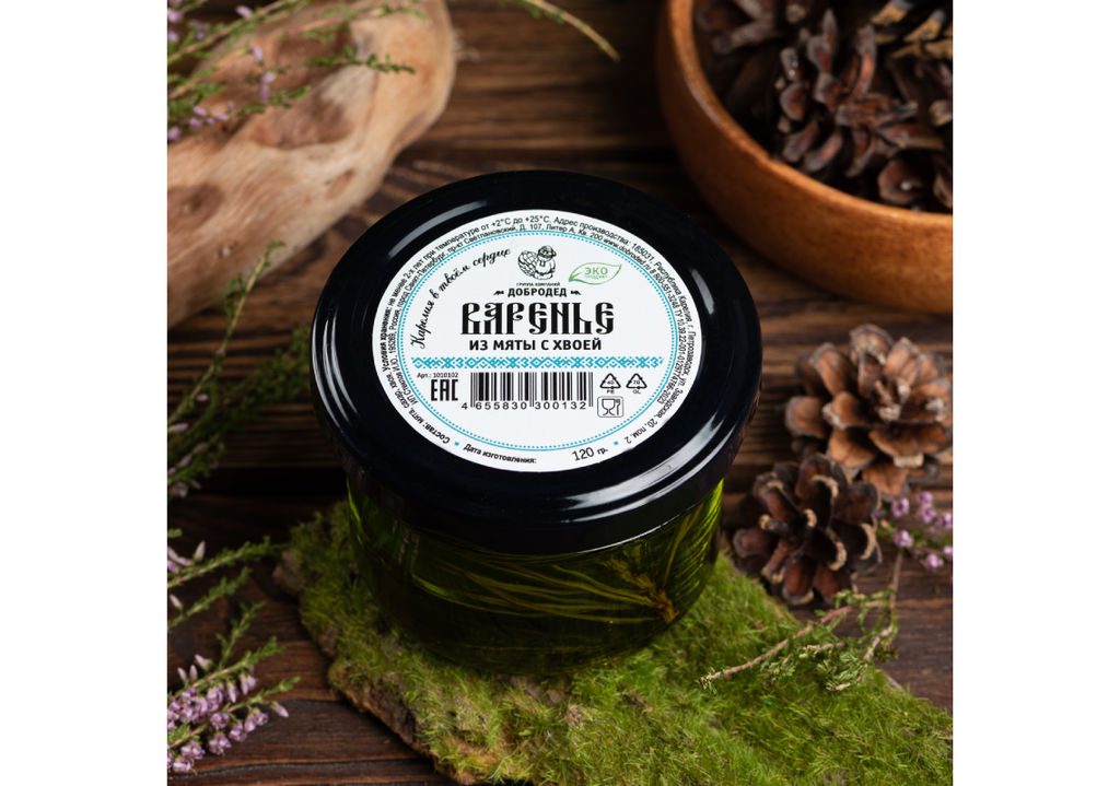 Описание товара Варенье из мяты с хвоей - это удивительное сочетание аромата и вкуса. Соединение свежей мяты и ароматной хвои создает потрясающую гармонию во вкусе. Мята придает варенью освежающий, легкий оттенок, который просто тает на языке. А хвоя добавляет неповторимый аромат, легкое хвойное послевкусие, кислинку и её можно употреблять в пищу. В итоге, получается настоящий шедевр - мятное варенье с хвоей.