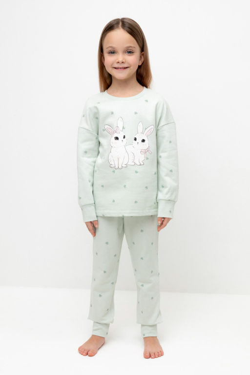 Трикотажная пижама с начёсом из натурального хлопка. Джемпер с длинными спущенными рукавами и брюки с эластичной резинкой в поясе. Мягкие манжеты на рукавах и по низу брюк. Оригинальные набивка и принт выполнены из стойких гипоаллергенных текстильных красителей. Изделие сохраняет цвет и форму после многократных стирок. Все трикотажные полотна производятся в соответсвии с нормами швейцарского сертификата ЭкоТекс.­
