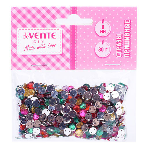 • Стразы пришивные "Круглые"акриловые, 6 мм, 30 г, цвет ассорти в пластиковом пакете с блистерным подвесом