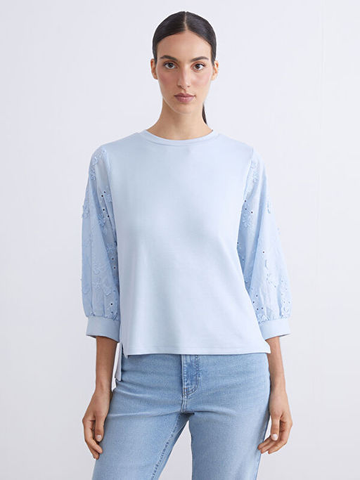 Bisiklet Yaka ?i?ek Nak??l? Kad?n Ti??rt