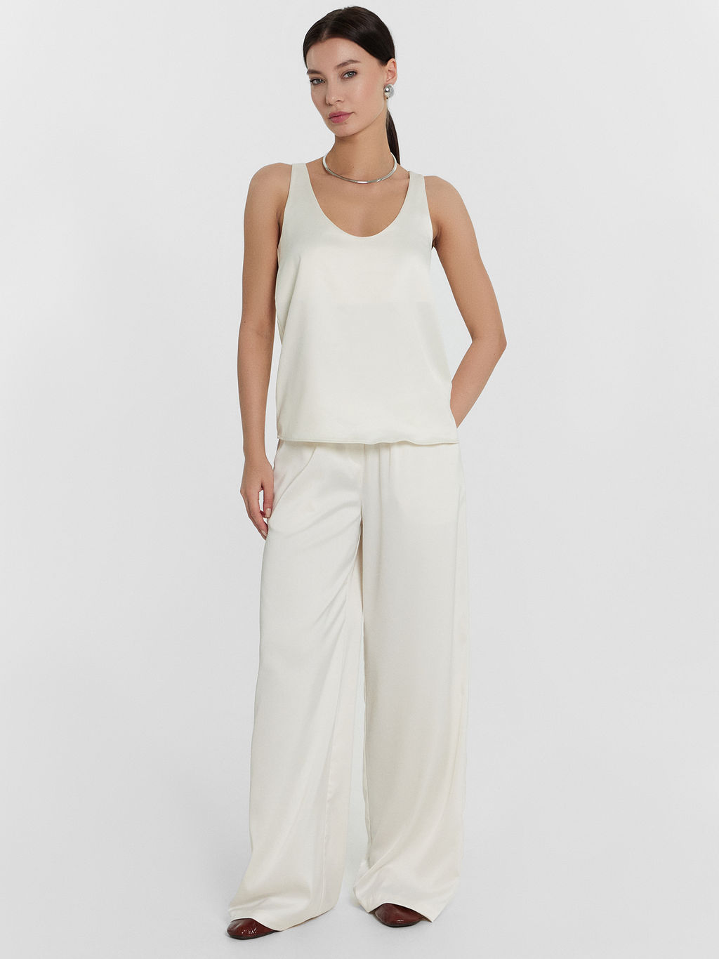 Элегантные женские брюки предлагают идеальное решение для активной жизни. Модель свободного прямого кроя обеспечивает комфорт и свободу движений, делая их идеальными для любого случая. Эластичный пояс гарантирует удобную посадку, а боковые карманы добавляют функциональности и практичности. Нижние срезы обработаны швом вподгибку с закрытым срезом, что обеспечивает аккуратный вид и долговечность. Брюки выполнены из прочного и износостойкого материала, долго сохраняющего свой первоначальный вид. Этот универсальный элемент гардероба прекрасно подойдет как для работы, так и для отдыха, обеспечивая вам комфорт и стиль каждый день.­