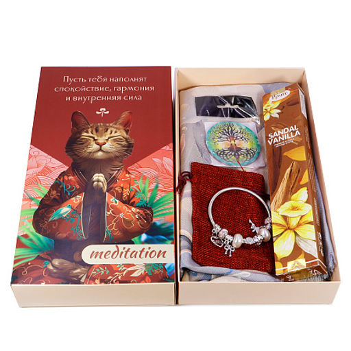 Подарочная коробка с котиком в медитации