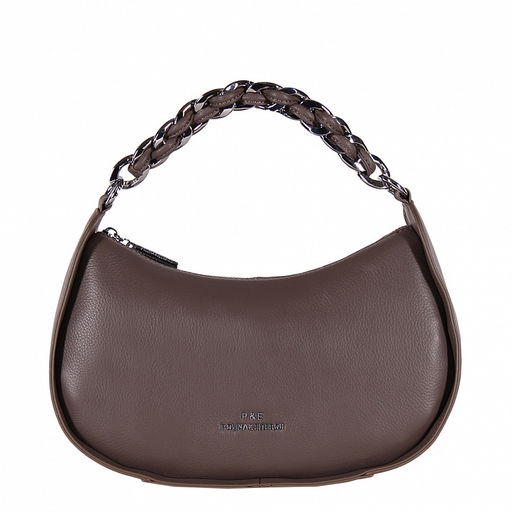 Стильная модель в форме полумесяц, выполнена из натуральной кожи. Декорирована ручкой-цепочкой. Дополнена серебристой фурнитурой. Данная модель закрывается на молнию. Каркас мягкий. Носится за ручку или за плечевой ремень.