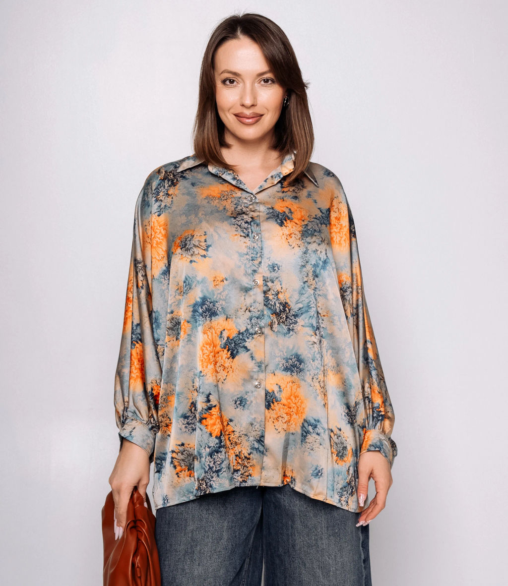 • Блуза #КТ1936 (2), голубой, оранжевый