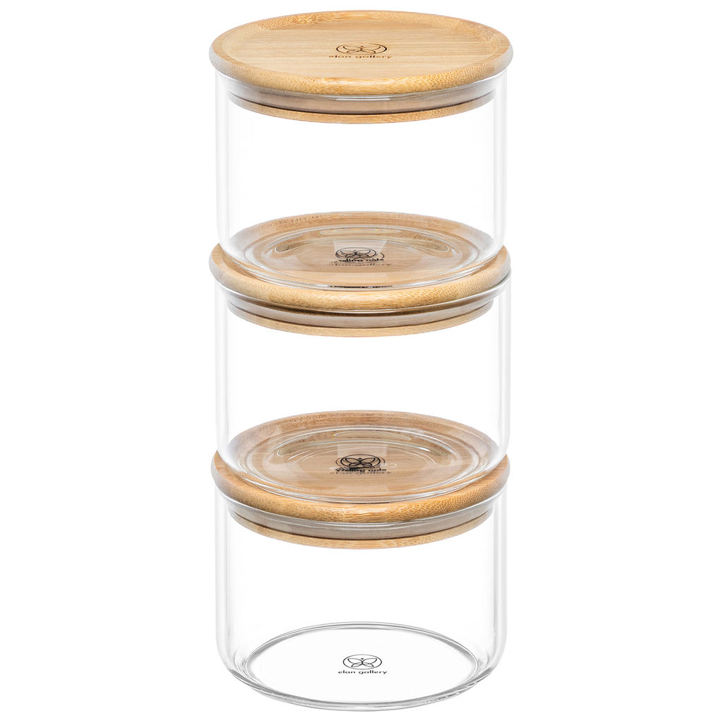 • Набор 3 банок д/хранения 500 мл 11*11*8,5 см "Crystal glass" + бамбук.крышка с силик. проклад,стекло