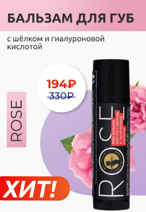• Rose бальзам для губ с шёлком и гиалуроновой кислотой 5гр