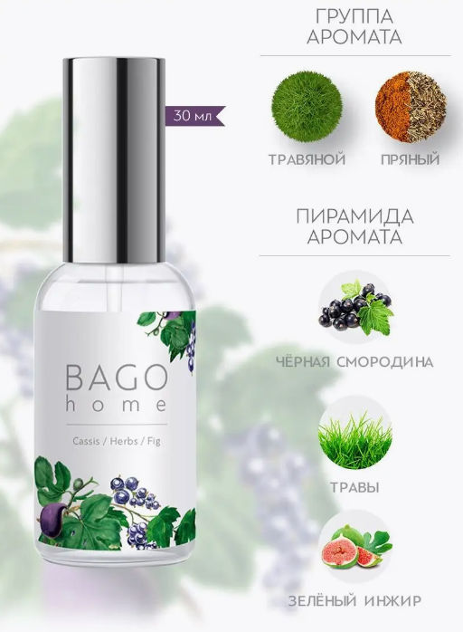 • Зеленый инжир BAGO home спрей ароматический для дома 30 мл