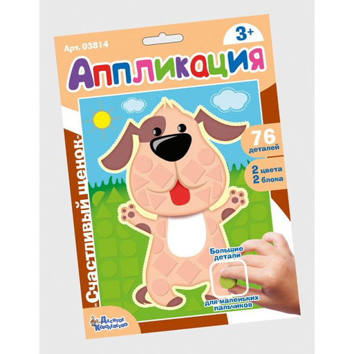 Развивающий набор для творчества «Счастливый щенок» — это увлекательная игра, которая поможет ребёнку развить мелкую моторику, воображение и творческие способности. Что развивает набор?Мелкая моторикаЗанятие с аппликацией способствует развитию мелкой моторики рук, что важно для подготовки ребёнка к письму и рисованию.Аппликация требует от ребёнка точной координации движений, ловкости рук и пальцев. Приклеивая аппликации, ребёнок тренирует мышцы кисти и предплечья, что помогает развивать мелкую моторику. Мелкая моторика напрямую связана с развитием речи, мышления и памяти.ВоображениеРебёнок может придумывать свои собственные узоры, что способствует развитию творческих способностей.Аппликация позволяет ребёнку проявить свою фантазию и воображение. Ребёнок может создать свой собственный неповторимый рисунок, используя различные цвета и формы аппликаций. Развитие воображения помогает ребенку лучше понимать окружающий мир и выражать свои эмоции.ЦветознаниеВ наборе представлены аппликации разных цветов, что поможет ребёнку познакомиться с основными цветами.Аппликация помогает ребёнку научиться различать цвета и оттенки. Знание цветов важно для развития творческих способностей ребёнка.БезопасностьАппликации изготовлены из безопасных материалов. Все детали набора тщательно обработаны, что исключает возможность травм.Аппликация выполнена из мягких материалов, которые не причинят вреда ребёнку.В набор входит:картонная основа с напечатанными цветным рисункомсамоклеящиеся квадратики 76 шт.инструкция Возраст: От 3 лет. Бесплатная доставка: Да.