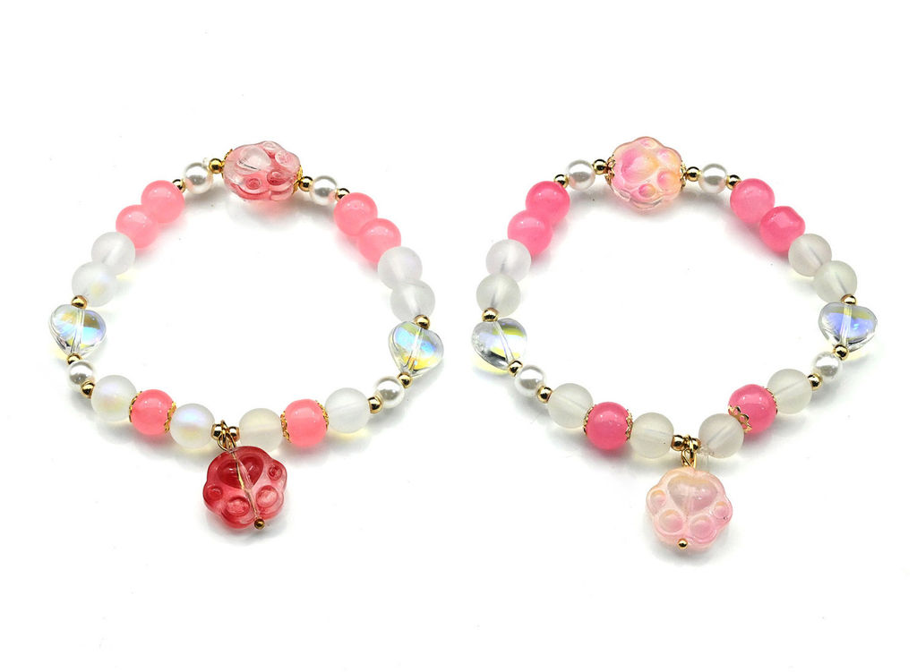 Браслет с подвеской "Лапка" шарик 8мм цв.розовый яркий, 17см