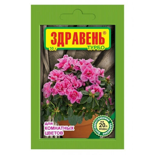 Здравень турбо увеличивает число побегов и листьев, способствует длительному и обильному цветению, более яркой окраске цветов и листьев. Укрепляет иммунитет растений и снижает негативное влияние ошибок в уходе.