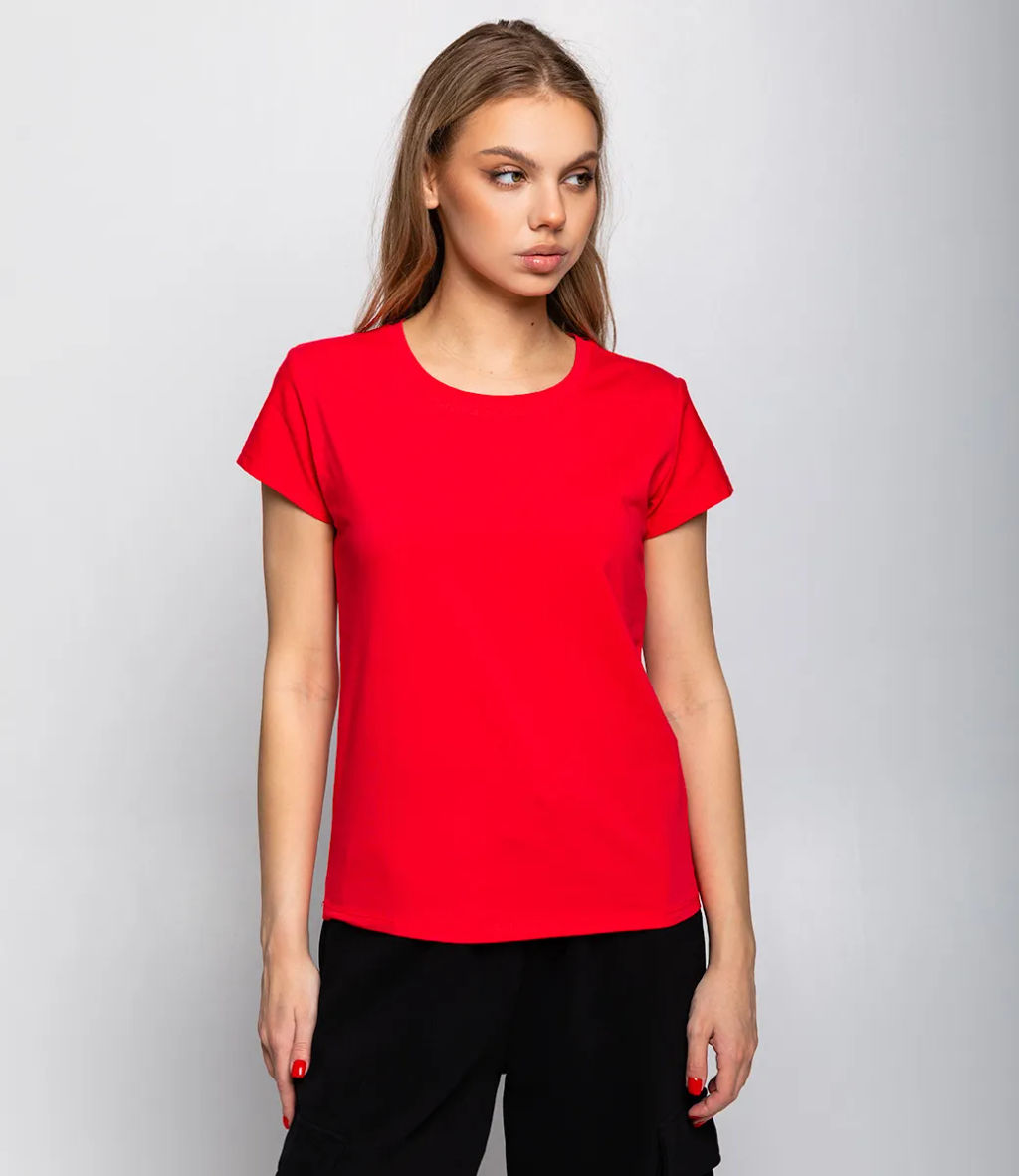 Базовая однотонная футболка с натуральным составом, идеальной длины. Универсальная модель прекрасно смотрится с джинсами, брюками, юбкой, также ее можно надевать в офис под пиджак или кардиган. Рост модели 168 см, 89-63-90.­