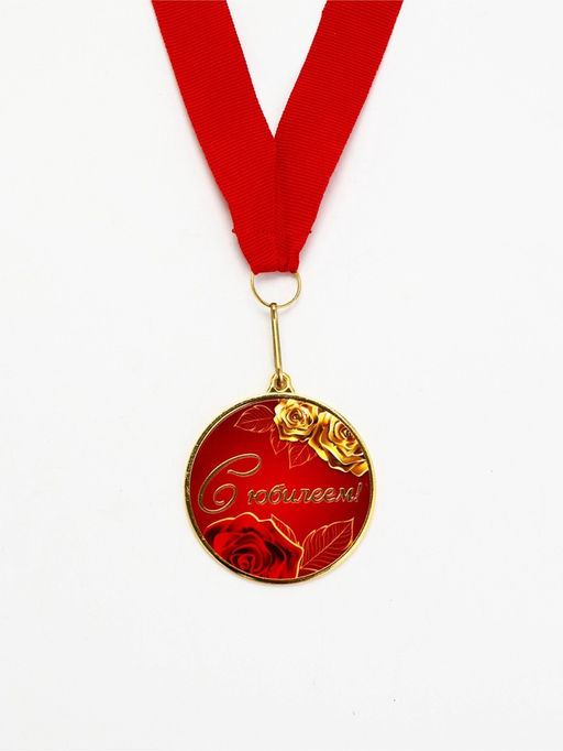 • Цена за 2 шт. Медаль с уф-печатью «С юбилеем», диам. 5 см, золотая, с лентой