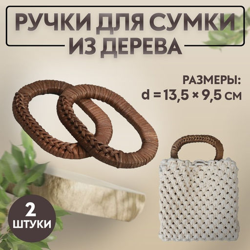 • Цена за 3 шт. Ручки для сумок деревянные, плетёные, d=9.8×5.9 / 13.5×9.5 см, 2 шт., коричневые