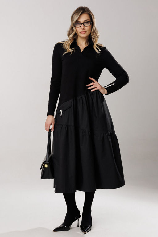 Состав: Верх платья: Хлопок-95%; Эластан-5%; Низ платья: ПЭ-40%; Спандекс-3%; Хлопок-57%; Восхитительное платье свободного А-силуэта с ассиметричным отрезным уклоном по линии талии и притачивания воланов юбки изделия, горловиной в стиле поло. Полочка и спинка платья отрезные по линии талии с ассиметричным уклоном. Верх изделия из трикотажного полотна. Спереди расположены горизонтальные нагрудные вытачки. Горловина платья оформлена V-образным вырезом с заходящими планками и отложным воротником со стойкой, в стиле поло. Глубина выреза 13-14 см. Ширина планок 3 см. Рукав прямой, одношовный, втачной. Линия плеча чуть спущена на 1,5 см. Длина рукава 59-60 см. Длина изделия по спинке 124,126 см (в зависимости от размерного ряда). Декоративным элементом выступает контрастная тесьма, расположенная вертикально по центру линии спинки лифа платья и фрагментарно на одном из рукавов изделия. Юбка платья А-силуэта состоит из двух составных воланов под уклоном на умеренной сборке. На линии соединения талии с юбкой платья с одной стороны переда втачена нефункциональная деталь-клапан. В боковом шве юбки изделия расположен внутренний карман. Длина платья по спинке 124-126 см (в зависимости от размерного ряда). (фурнитура может отличаться от представленной на рекламном фотоматериале) Особые рекомендации: рекомендуется холодная деликатная ручная стирка, без использования отбеливающих СМС, без интенсивного трения. Сушка в вертикальном положении. ВТО с минимальным паром. -- Характеристики -- Состав: Верх платья- Хлопок-95%; Эластан-5%; Низ платья- ПЭ-40%; Спандекс-3%; Хлопок-57%; Сезон: Весна Рост: 164 Страна бренда: Беларусь