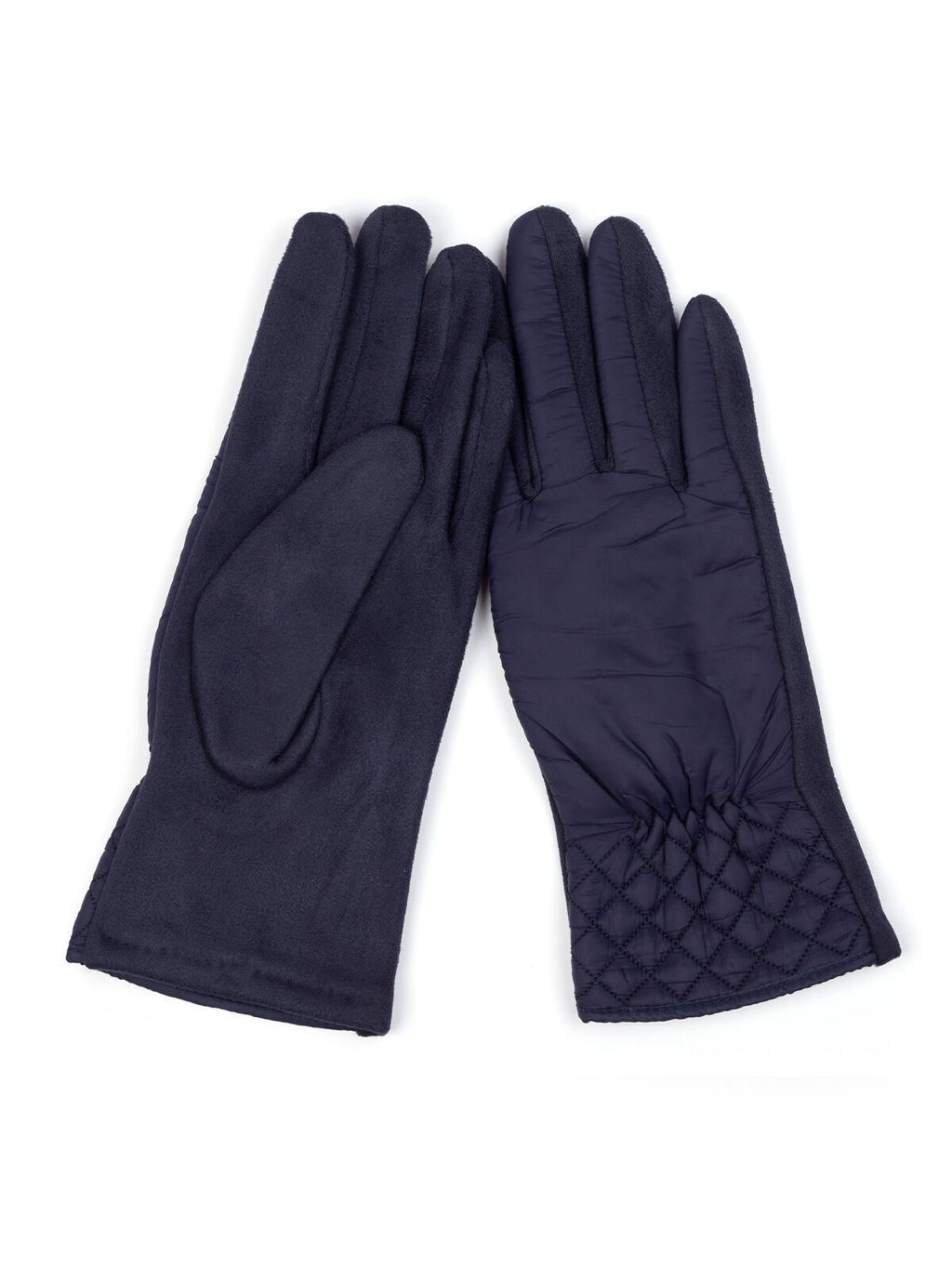 Мягкие, теплые текстильные женские перчатки , защищены непромокаемым слоем на тыльной части. Глубокий темно-синий цвет подойтет к большинству современных образов. Манжета декорирована оригинальной строчкой. Незаменимый аксессуар согреет свою обладательницу в любую погоду.