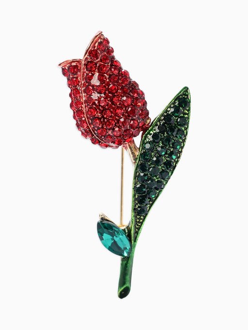 • Брошь «Цветок» тюльпан, стразы, цвет красно-зелёный в золоте