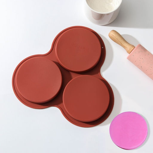 Форма для выпечки Доляна «Круг», силикон. 23×19.5 см, 3 ячейки (d=10 см), розовая