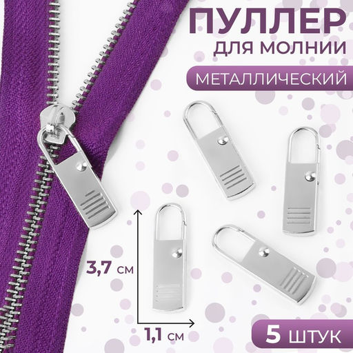 • Язычок - пуллер для молнии, металлический, 3.7 см × 1.1 см, 5 шт., цвет серебряный