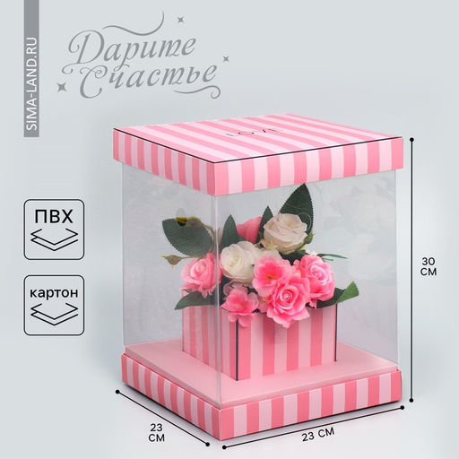 Размер внутренней вазы: 13 х 13 х 10 см. Форма: Квадратная. Длина, см: 23. Ширина, см: 23. Тематика: Цветочно-растительная. Рисунок: Да. Тематика праздника: 14 Февраля. Вид: Коробки. Форма: Квадратная. Бесплатная доставка: Да. Наша разработка: Да. Размеры товара: 23/30/23.