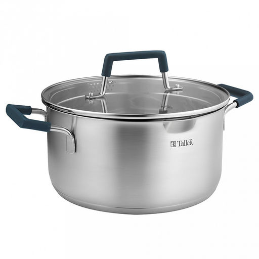 Кастрюля из нержавеющей стали "Ковентри" 4,4л, s0,6мм, дно s2,8мм, стеклянная жаропрочная крышка, обод крышки с перфорацией, ручки с силиконовыми вставками, цветная коробка, "TalleR" (Китай)