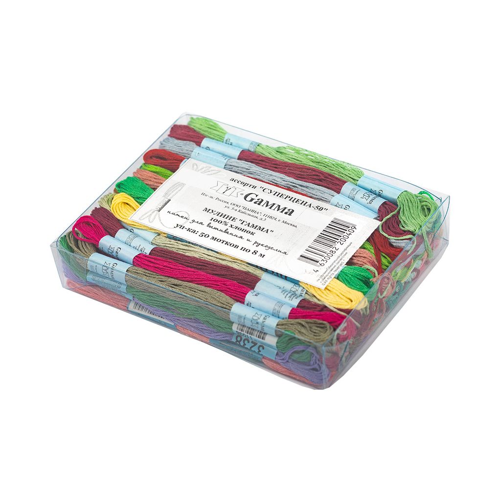 Нитки для вышивания Gamma набор мулине Суперцена-50 100% хлопок 50 x 8 м Ассорти
