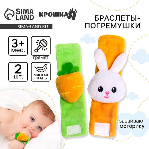Погремушка - браслет «Зайка» набор 2 шт., от 3 мес., Крошка Я