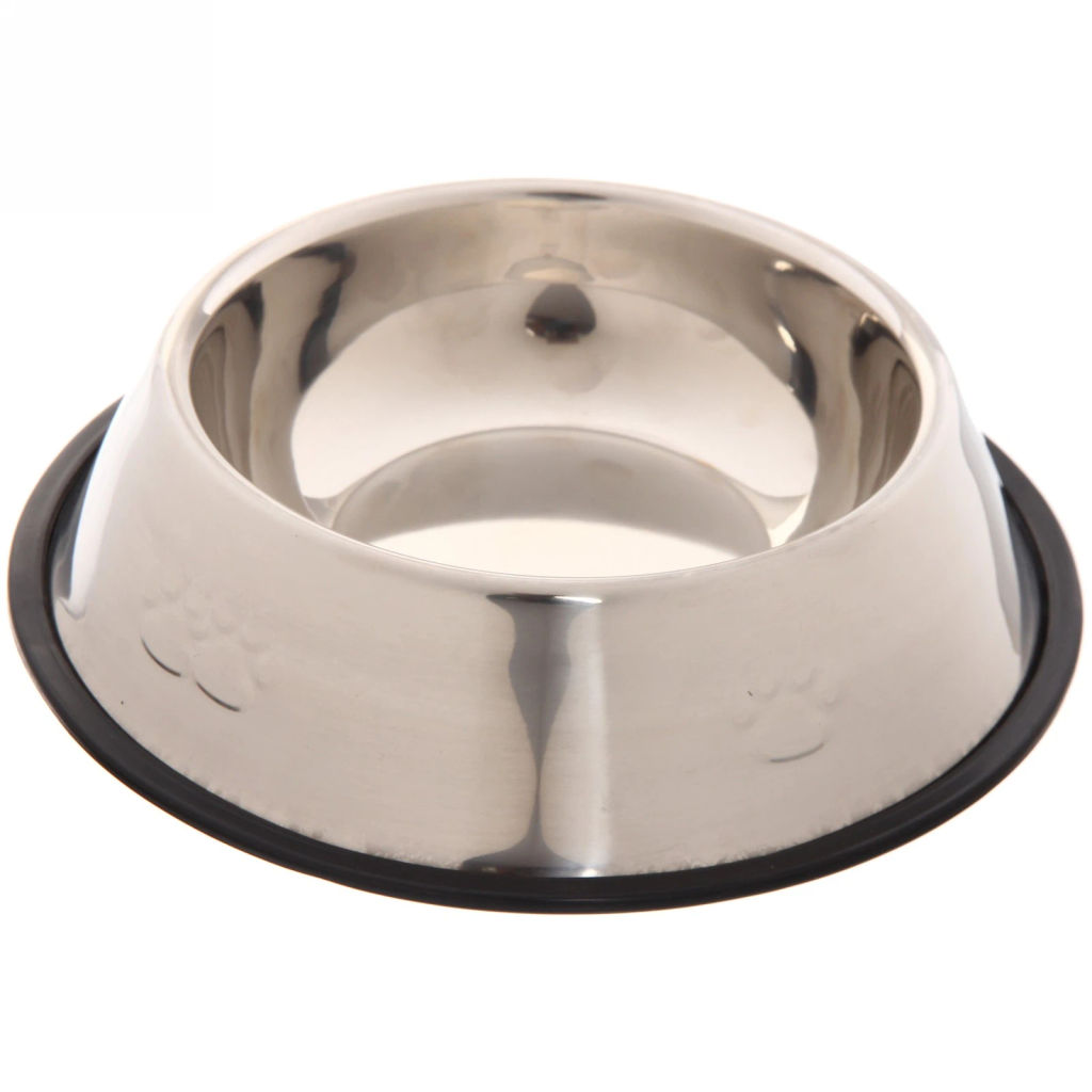 Цена за 2 шт. Миска металлическая для животных "ЛАПКИ", чёрный пластиковый ободок, размер L, 21,5*6см/500мл