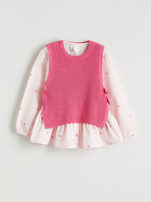 Bask?l? Poplin K?z ?ocuk G?mlek ve S?veter