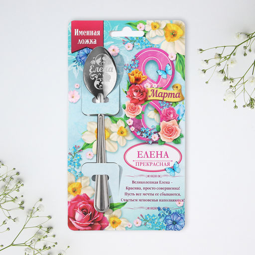 • Цена за 3 шт. Ложка чайная именная Елена, с 8 марта, 3?14 см