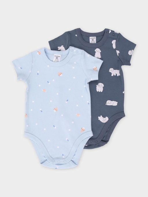 Боди для новорождённых из мягкого эластичного трикотажа, произведённого из натурального хлопка. В упаковке 2 штуки. Застёгиваются на кнопки на плече и по низу изделий. Оригинальная набивка выполнена из стойких гипоаллергенных текстильных красителей. Все трикотажные полотна производятся в соответствии с нормами швейцарского сертификата ЭкоТекс.. Состав: 100% хлопок