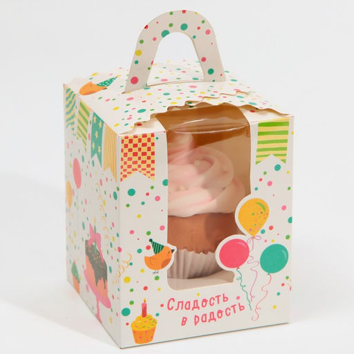 • Цена за 5 шт. Коробка для капкейков, кондитерская упаковка, 1 ячейка «Сладость в радость», 9 х 9 х 11 см