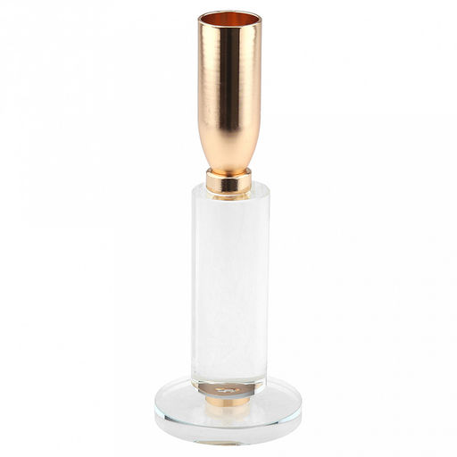 • Подсвечник стеклянный "Аура" h16,4см, чаша металл д2,4см, h2см, отвинчивающаяся, основание д6см, прозрачный/золотой, в коробке (Китай)
