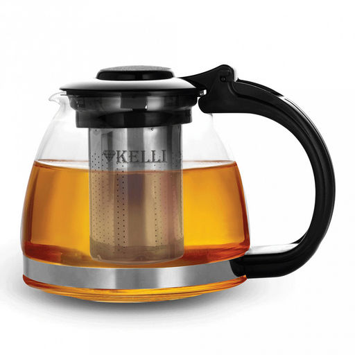 Чайник заварочный "Kelli" 1л, из термостойкого стекла, фильтр из нержавеющей стали, пластиковая крышка, эргономичная ручка (Китай) Можно мыть в посудомоечной машине