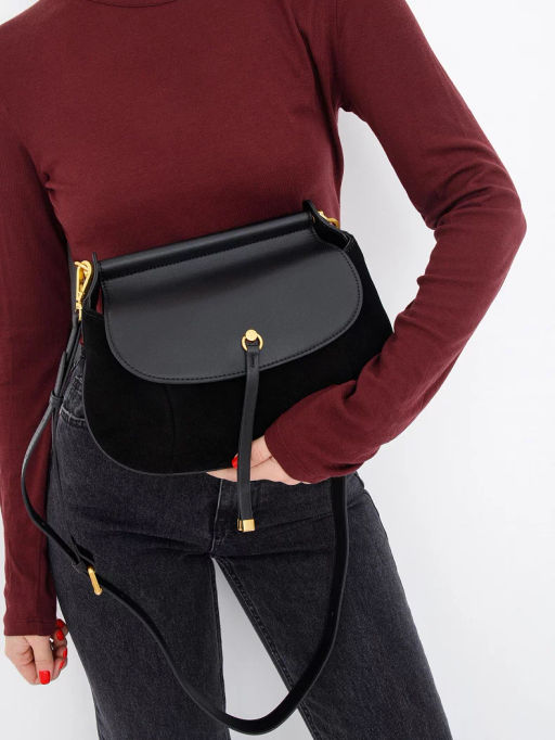 Сумка интересной формы, выполнена из натуральной замши и кожи. Дополнена золотистой матовой фурнитурой. Данная модель закрывается на клапан, носится на плече, в комплекте имеется ремень с регулировкой длины. Каркас полужесткий.
