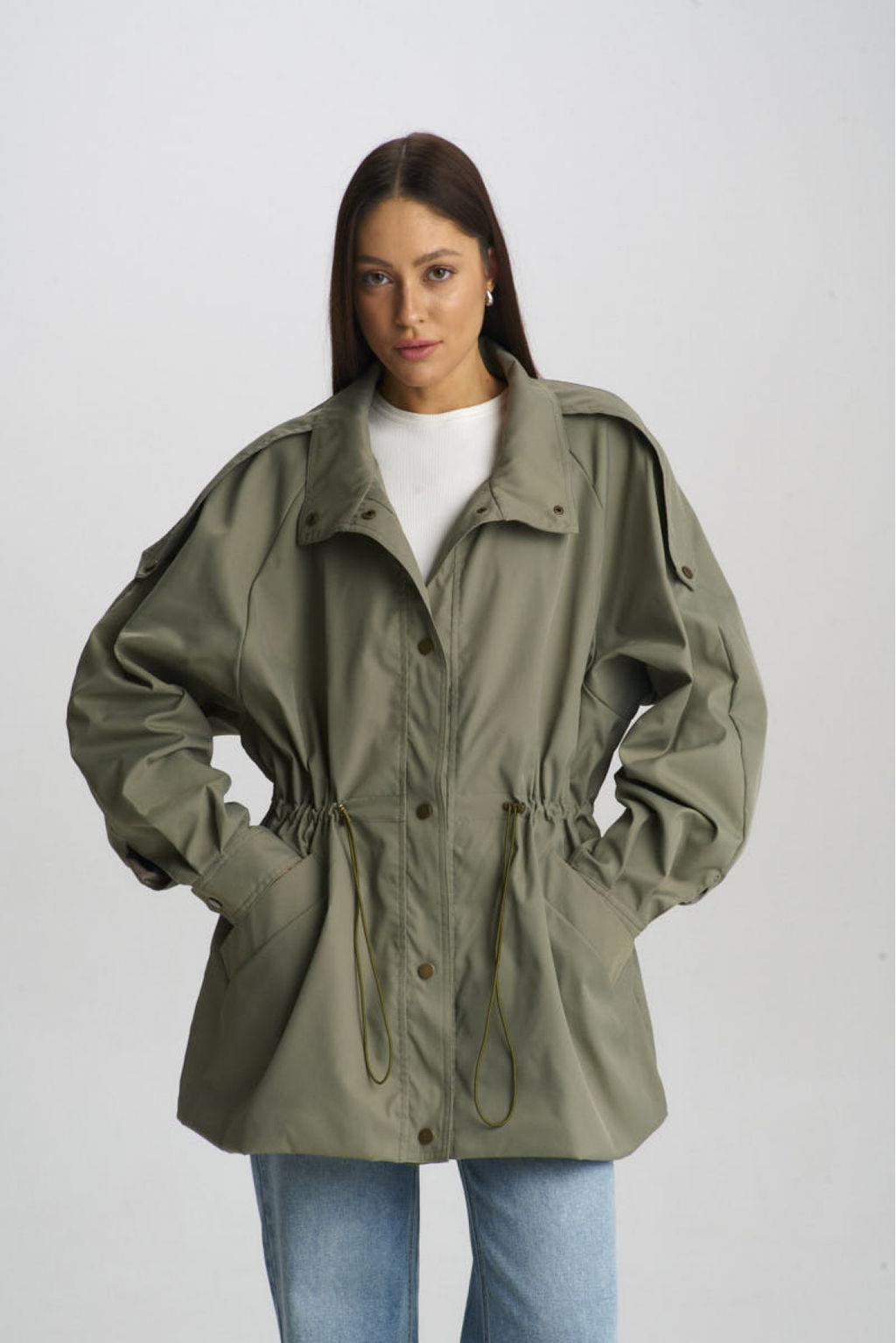 Объемная куртка-реглан на кулиске создана для стильных повседневных образов и динамичной жизни в городе носите ее с джинсами и обувью на плоском ходу.