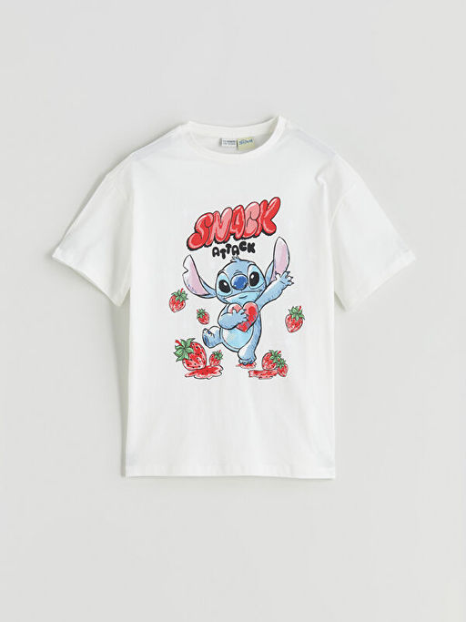 Bisiklet Yaka Stitch Bask?l? K?z ?ocuk Ti??rt