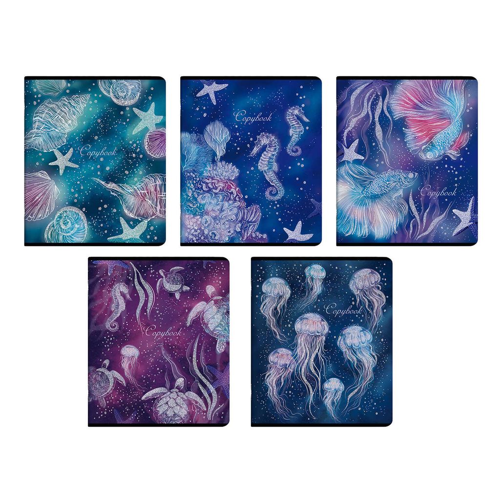 • Тетрадь, 48 л. клетка, арт. 56681/ 5 МОРСКИЕ ОБИТАТЕЛИ /мягкий переплёт (2 скобы), обложка - глиттер, тиснение фольгой, мелованный картон 190 г/м2, Упаковка Ассорти/